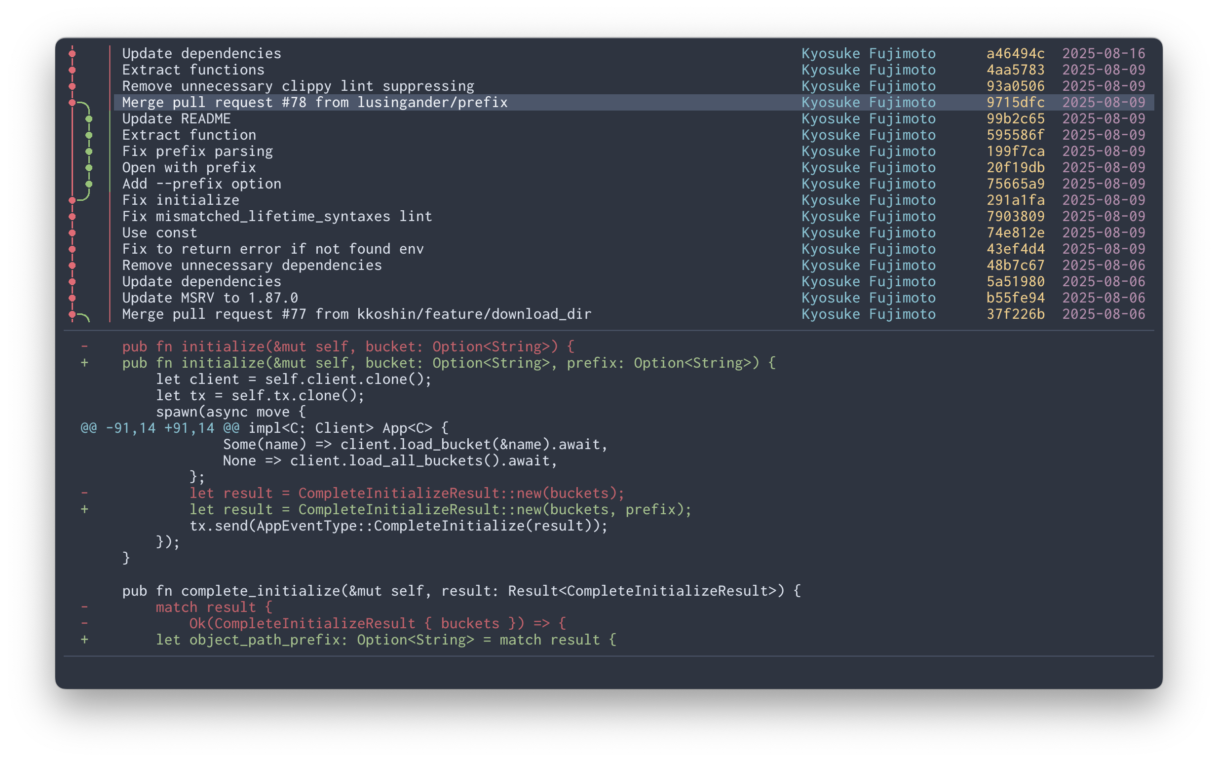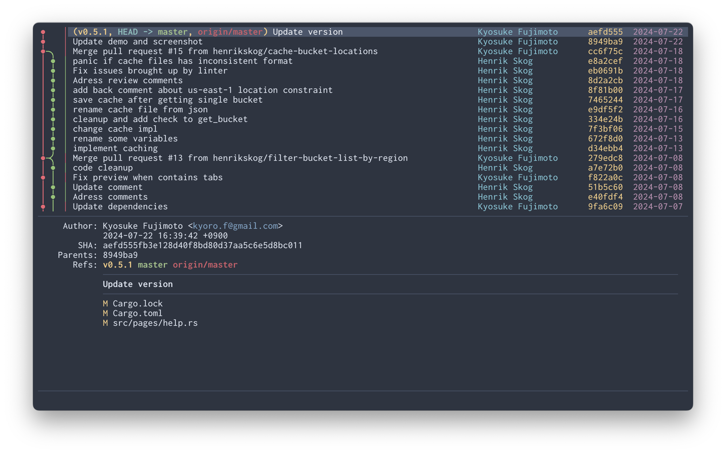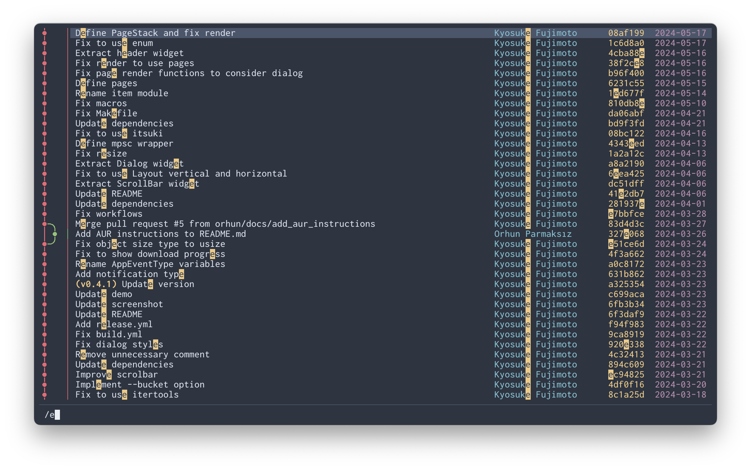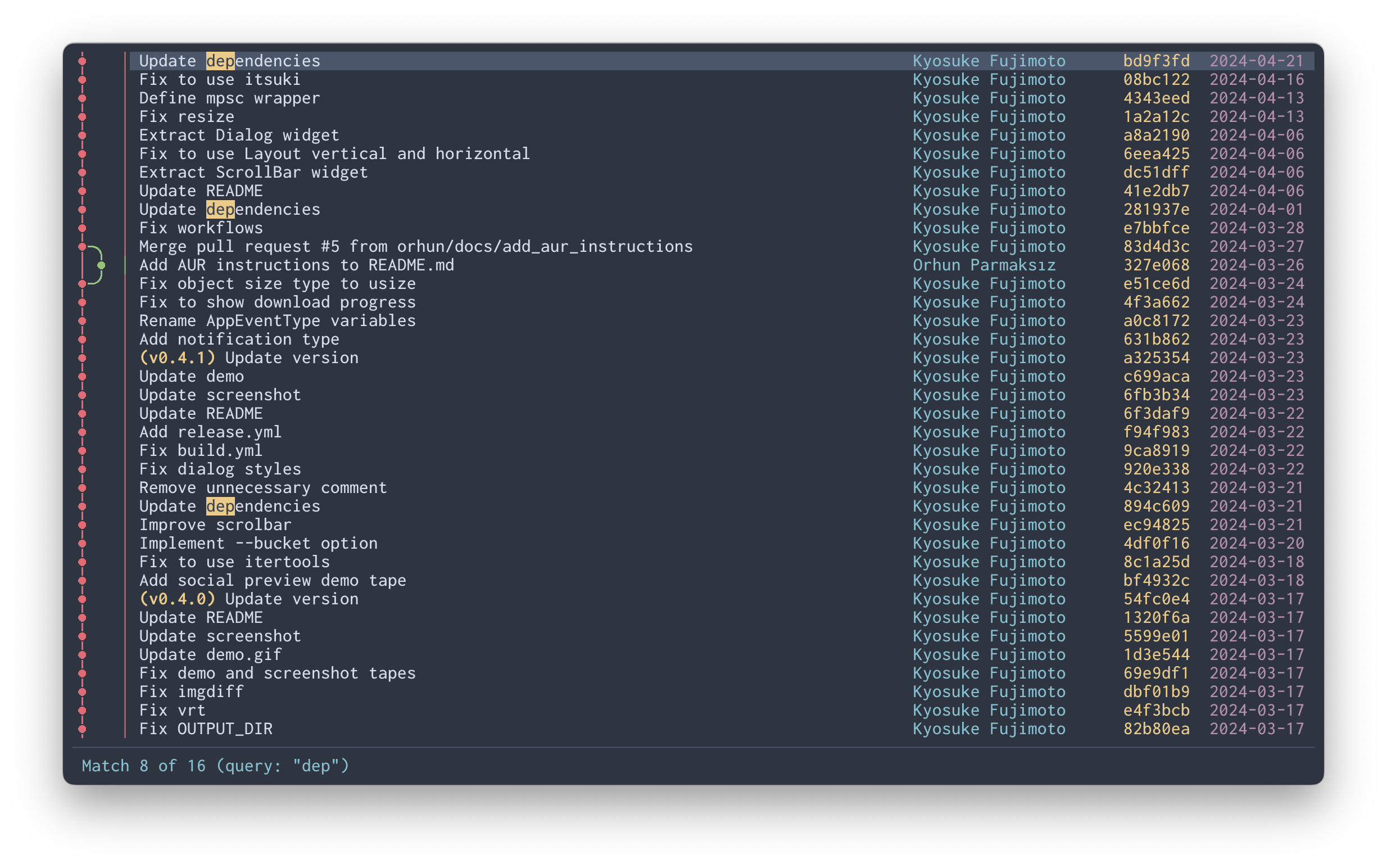 | Enter | Show commit details Apply search (if searching) | confirm |