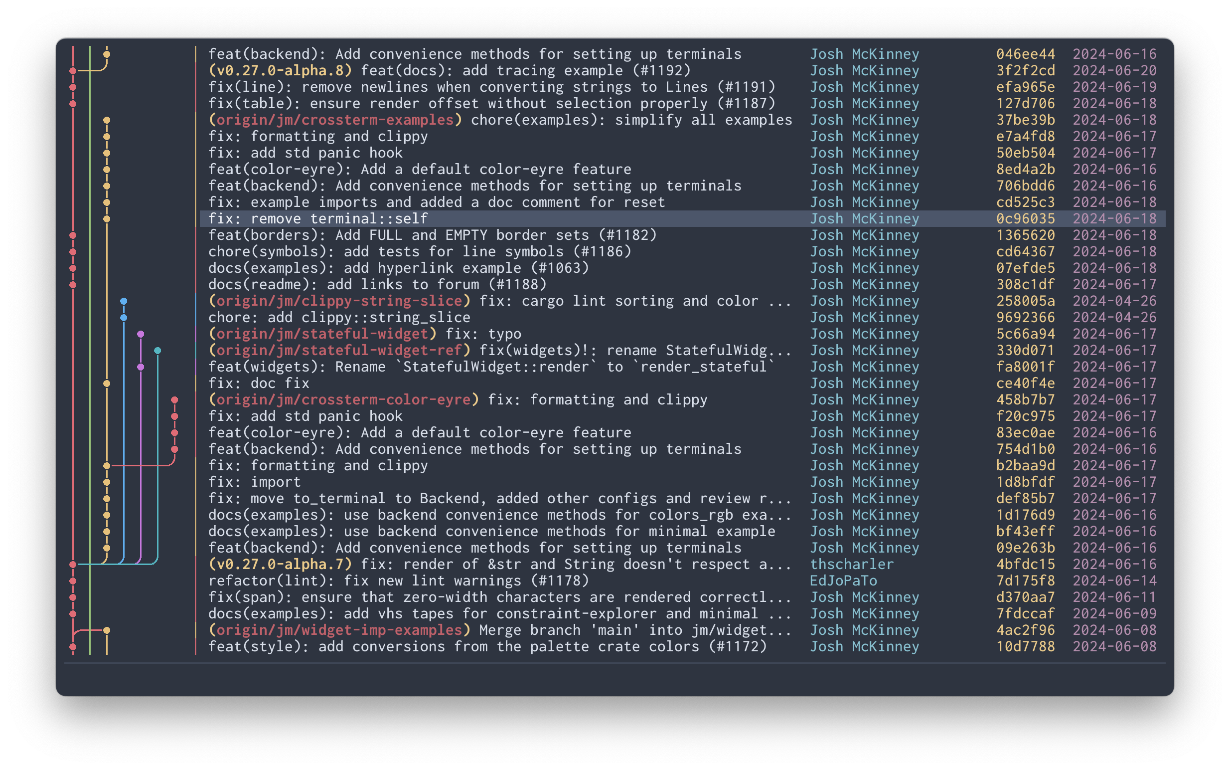 git log --graphor the graph display in existing TUI clients - You need to perform complex git operations within a TUI client