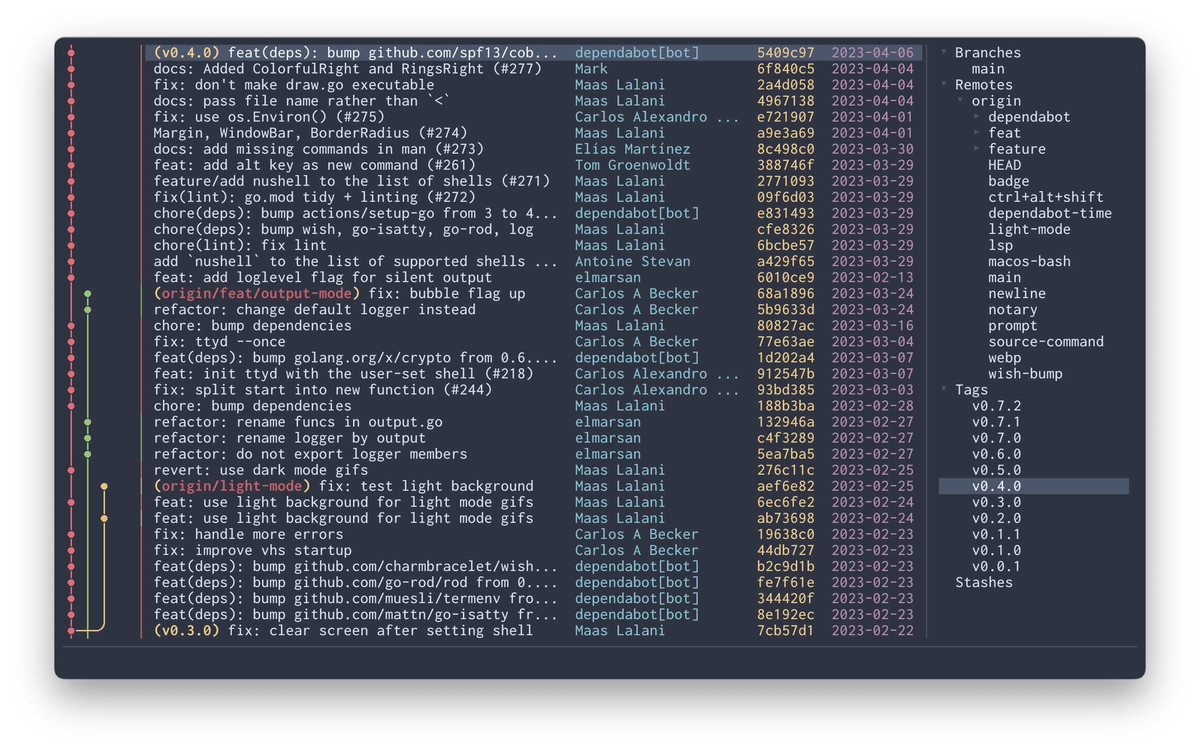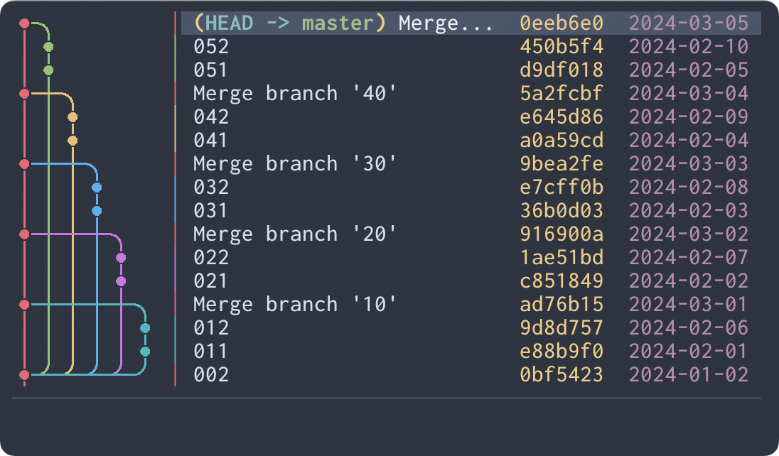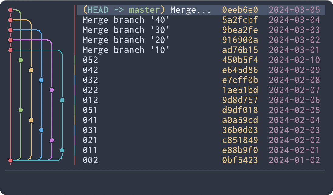git log --graphexperience in the terminal. - Offer commit graph-centric browsing of Git repositories.